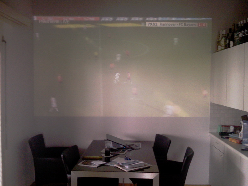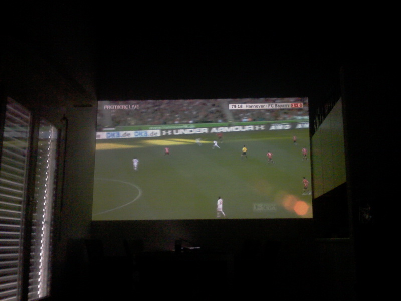 Bild 1, dunkel, Beamer im Einsatz. Das Bild ist ca. 270 cm Breit...