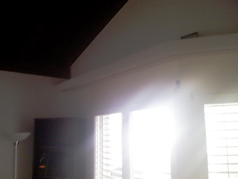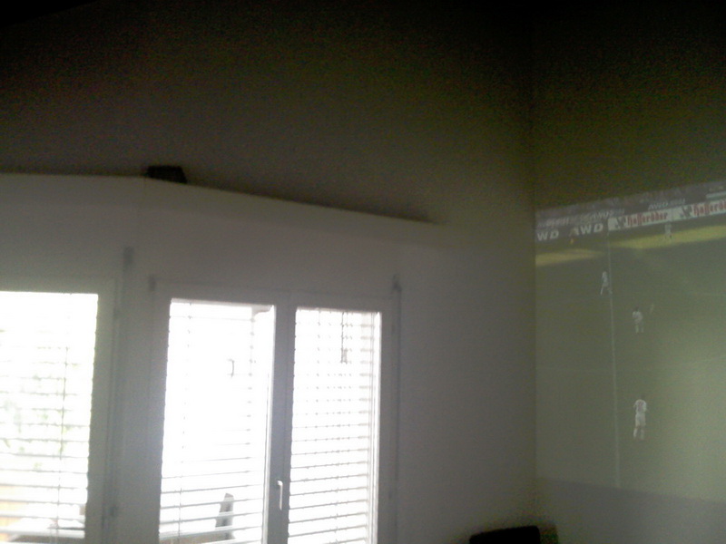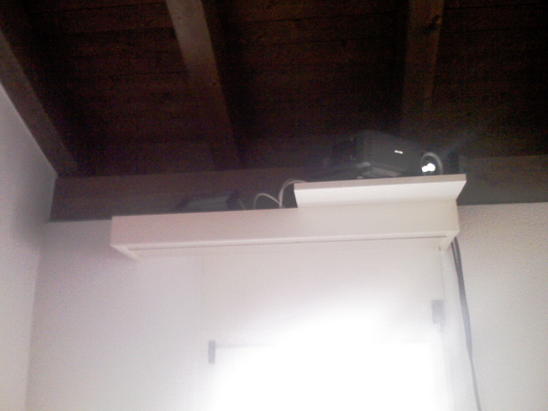 bild 8 zeigt das Holz beim Beamer nochmals etwas genauer... es ist auf gleicher Höhe (ca. 245cm) wie die auf der linken Seite. Da drauf wär eben der hinten link Speaker gedacht...